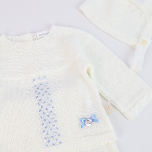 AusverkauftFeinstrickset Dreiteiler Weiß/Blau